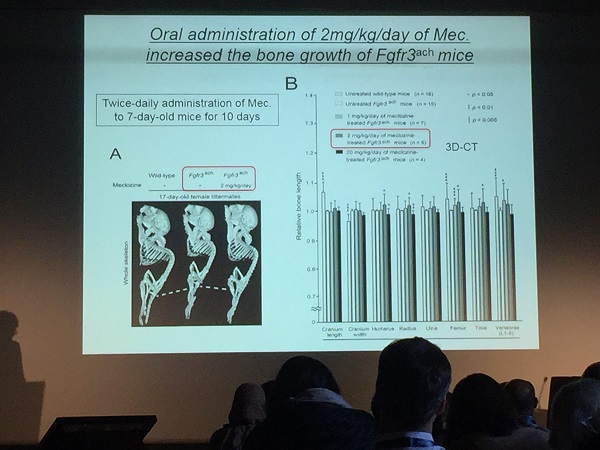 His team observed that cutting-off the FGFR3 signaling in-vitro promoted (produced) longitudinal bone growth in transgenic ACH mice (mice that were genetically changed to be born with the ACH mutation). The team has been investigating which is the optimal dose of meclozine for the treatment of short stature in ACH for further clinical application in children.