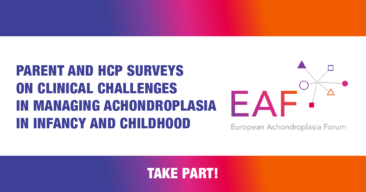 Ahead of the upcoming workshop on 27th October 2022, 16:30 CET, Clinical Management Challenges in Infants and Young Children with Achondroplasia, EAF is undertaking two surveys to establish the challenges of managing achondroplasia in these age groups: one for parents of children with achondroplasia and one for clinicians.